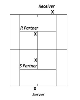 While all of these elements are crucial, I am also a fan of using the Australian formation. The first diagram below shows the initial setup, with the server and the returner on the same side of the court.